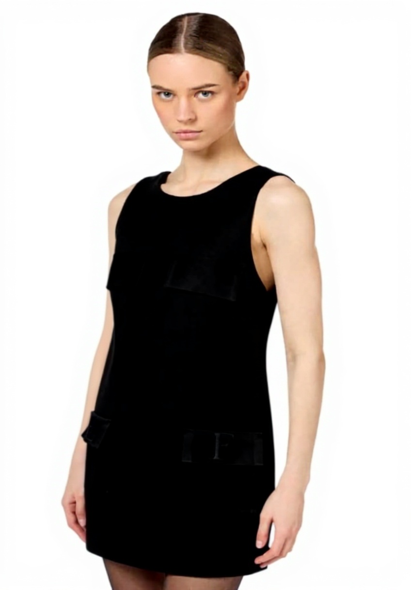 L’abito nero Elisabetta Franchi è un capo di alta moda, progettato per occasioni speciali come serate e cerimonie. Realizzato con un tessuto composto da 63% viscosa, 35% poliammide e 2% elastan, offre una vestibilità comoda e una finitura elegante che si adatta perfettamente al corpo, esaltando la silhouette senza sacrificare il comfort.