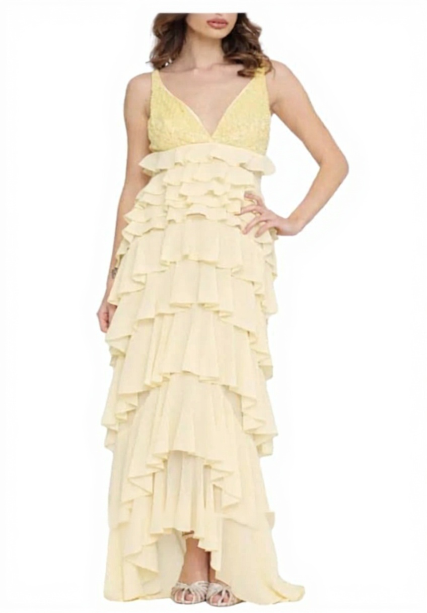 Elisabetta Franchi Abito Red Carpet in Georgette con Balze Giallo Lemonade