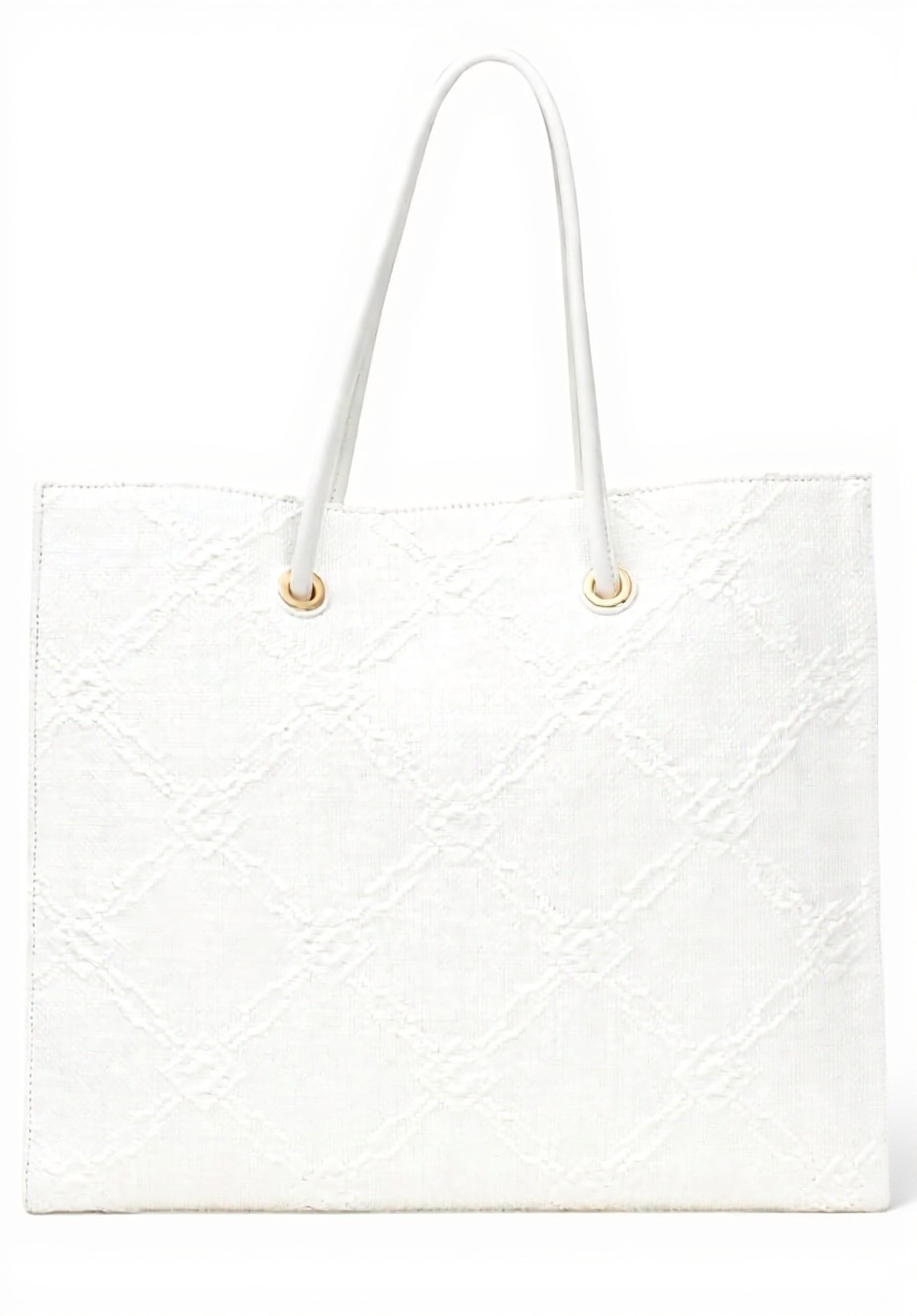 Questa shopper di Elisabetta Franchi è una borsa a mano pensata per chi cerca un accessorio versatile, adatto sia al lavoro che al tempo libero. Con il suo colore avorio neutro e la texture jacquard, si integra senza sforzo in armadi diversi, diventando un compagno quotidiano per donne che apprezzano l’eleganza discreta e la funzionalità.