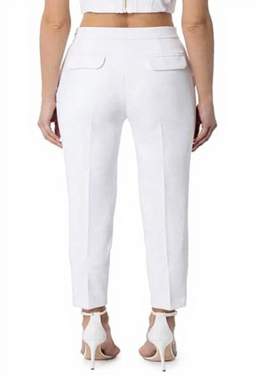 Pantalone Dritto Elisabetta Franchi in Crêpe Stretch con Fascetta Avorio