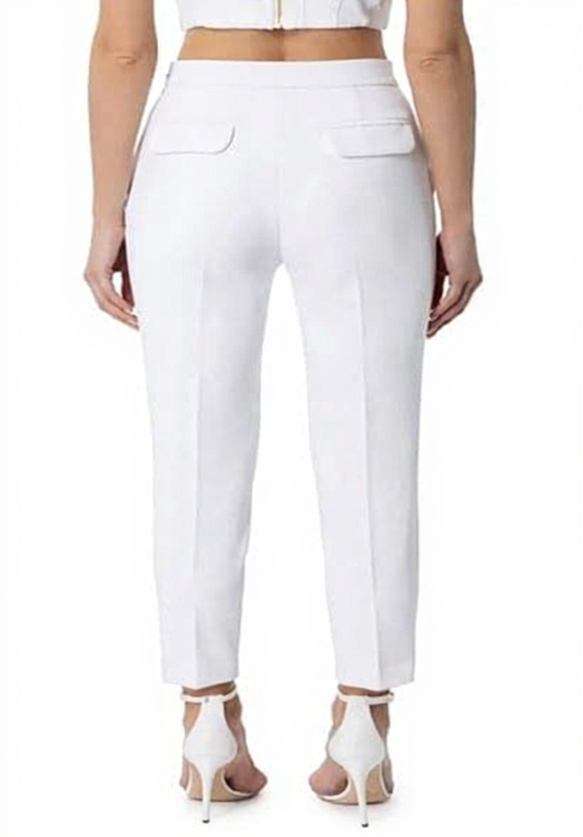 Pantaloni Dritti Elisabetta Franchi in Crêpe Stretch con Morsetto Avorio